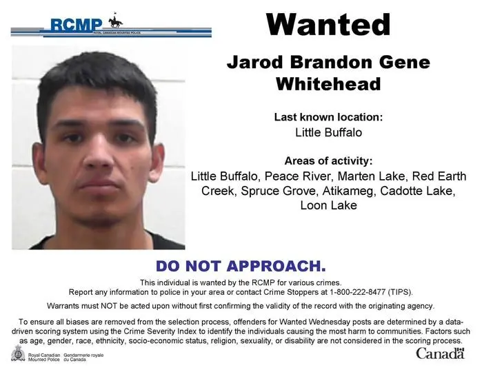 From the RCMP’s Weekly Wanted File, police are looking for Jarod Brandon Gene Whitehead.
