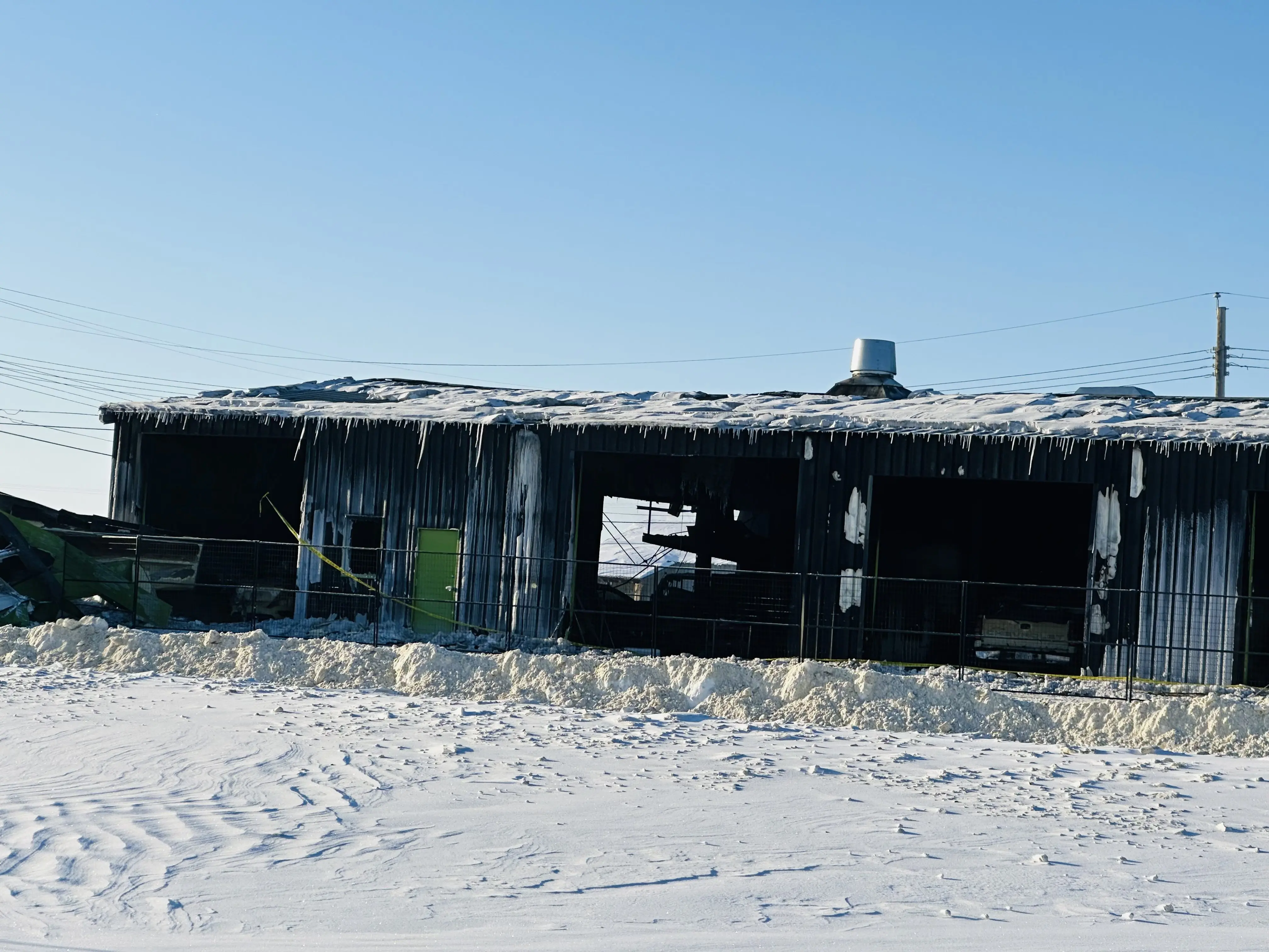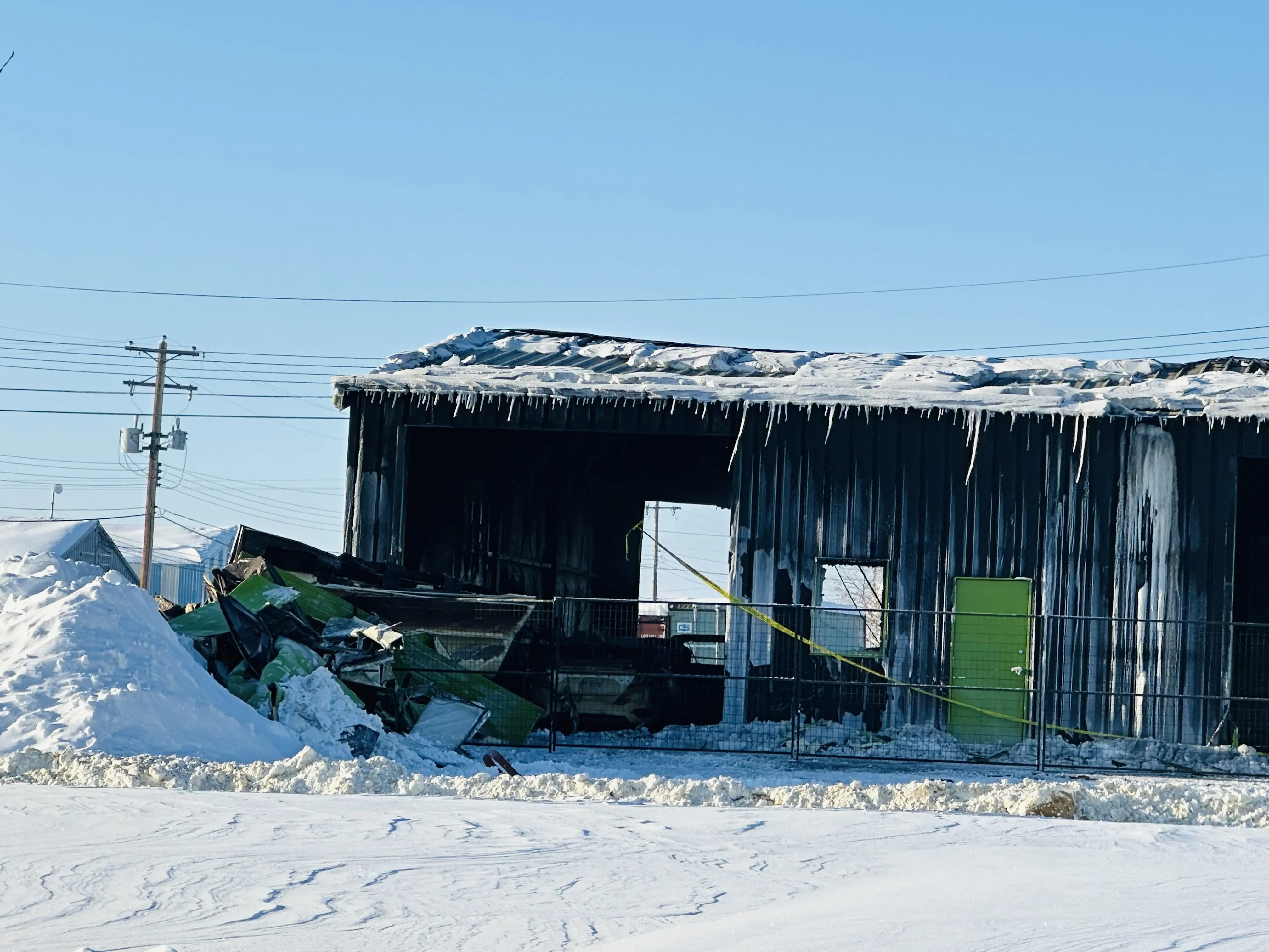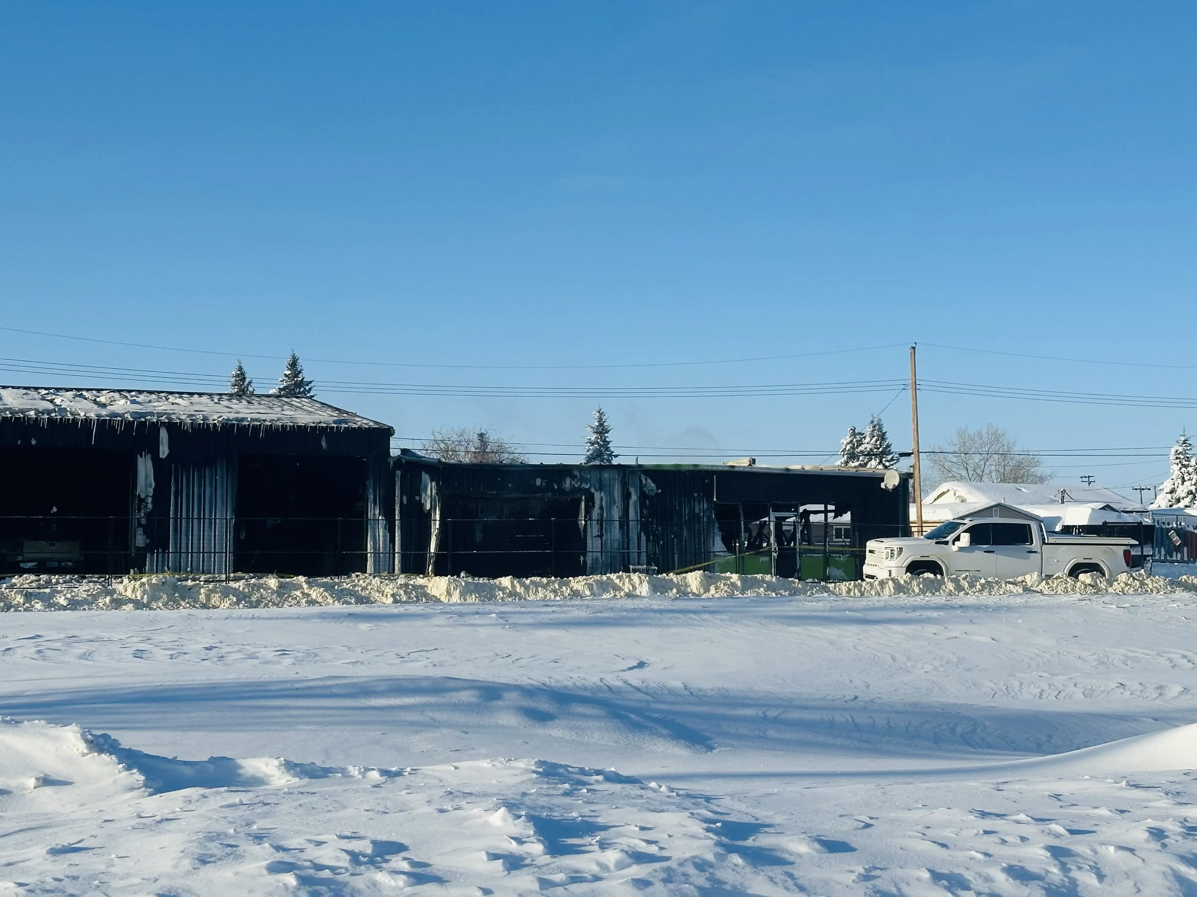 Emergency crews remain on scene following a fire at a local business in Grimshaw.