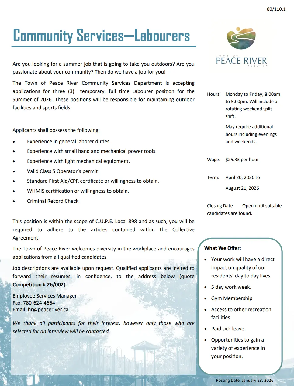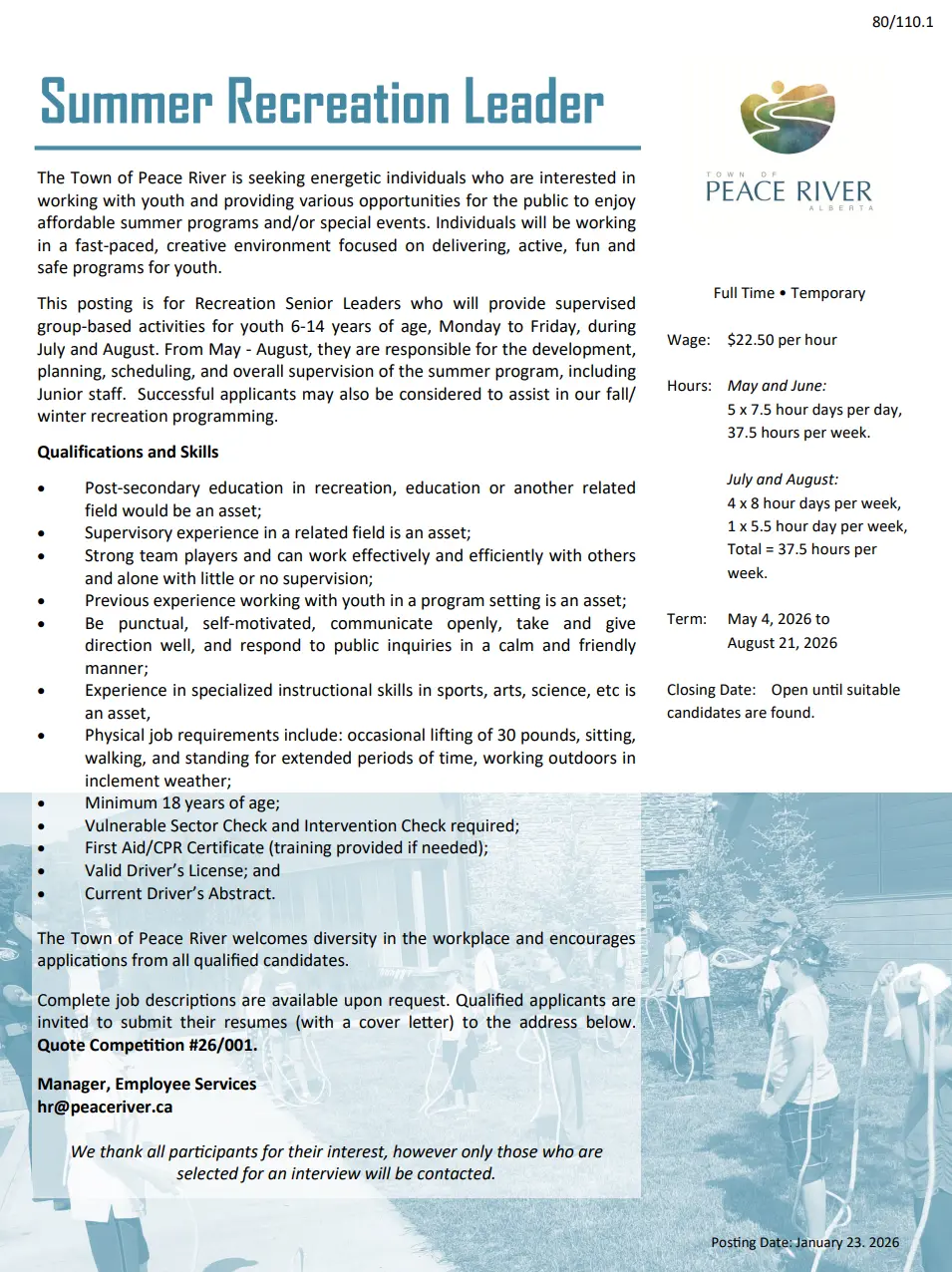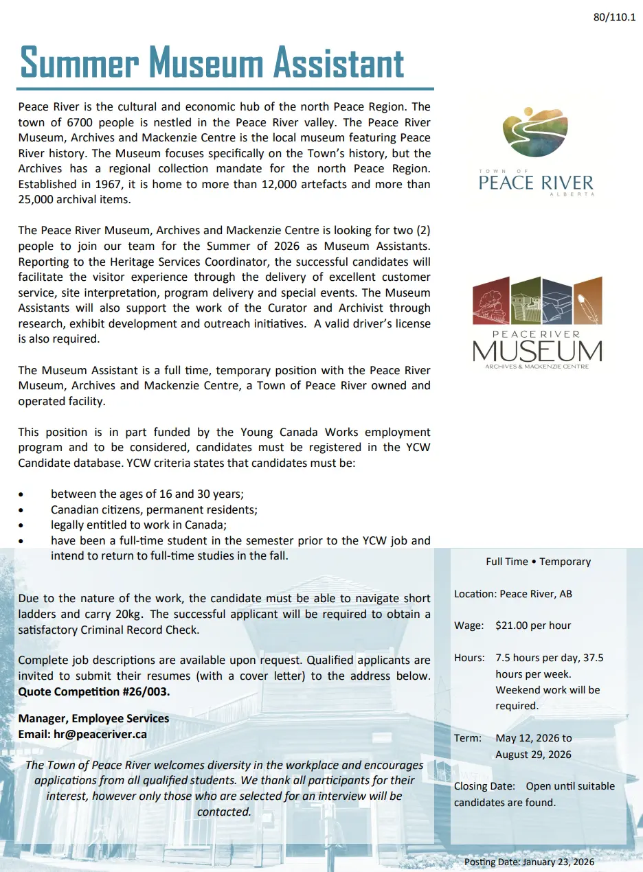 TOWN OF PEACE RIVER – SUMMER JOBS