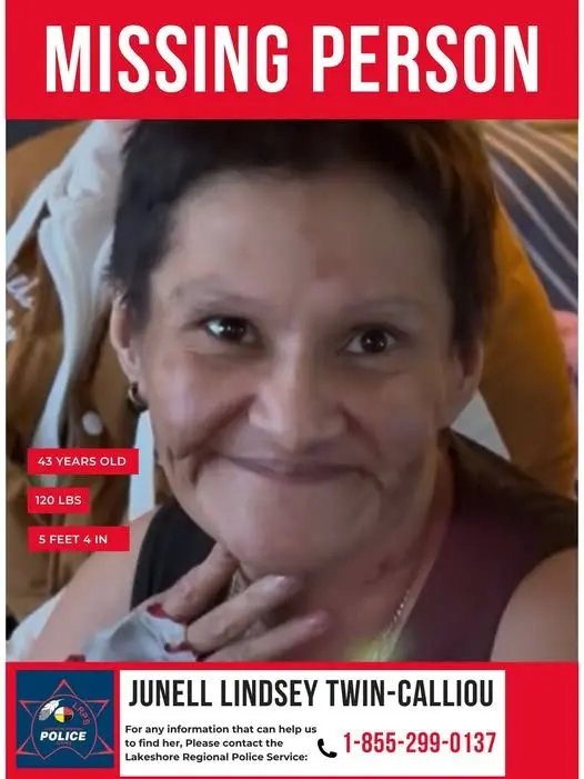 Authorities are seeking public assistance in locating Junell Twin-Calliou, a resident of Sucker Creek First Nation, reported missing on February 28, 2026.