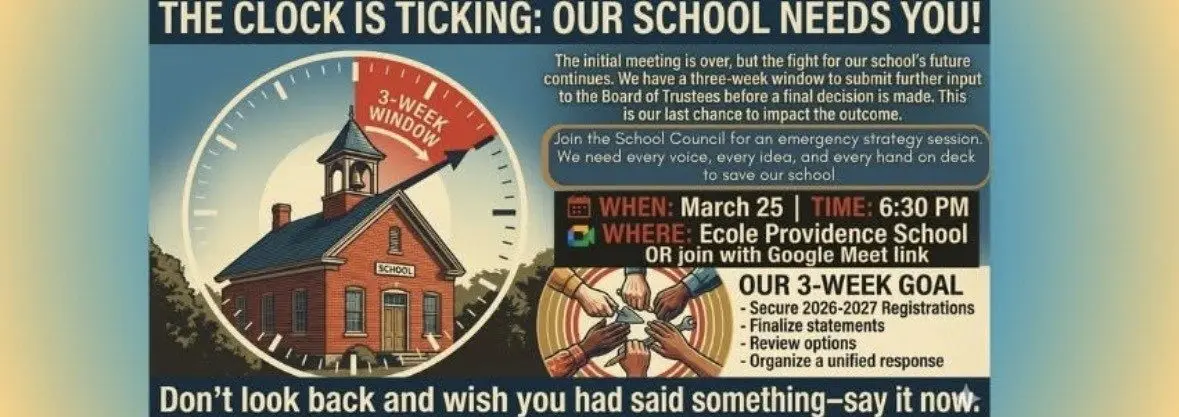 A strategy session has been scheduled for tonight (March 25) at 6:30 pm at Ecole Providence School, where parents, residents, and stakeholders are encouraged to attend in person or online.